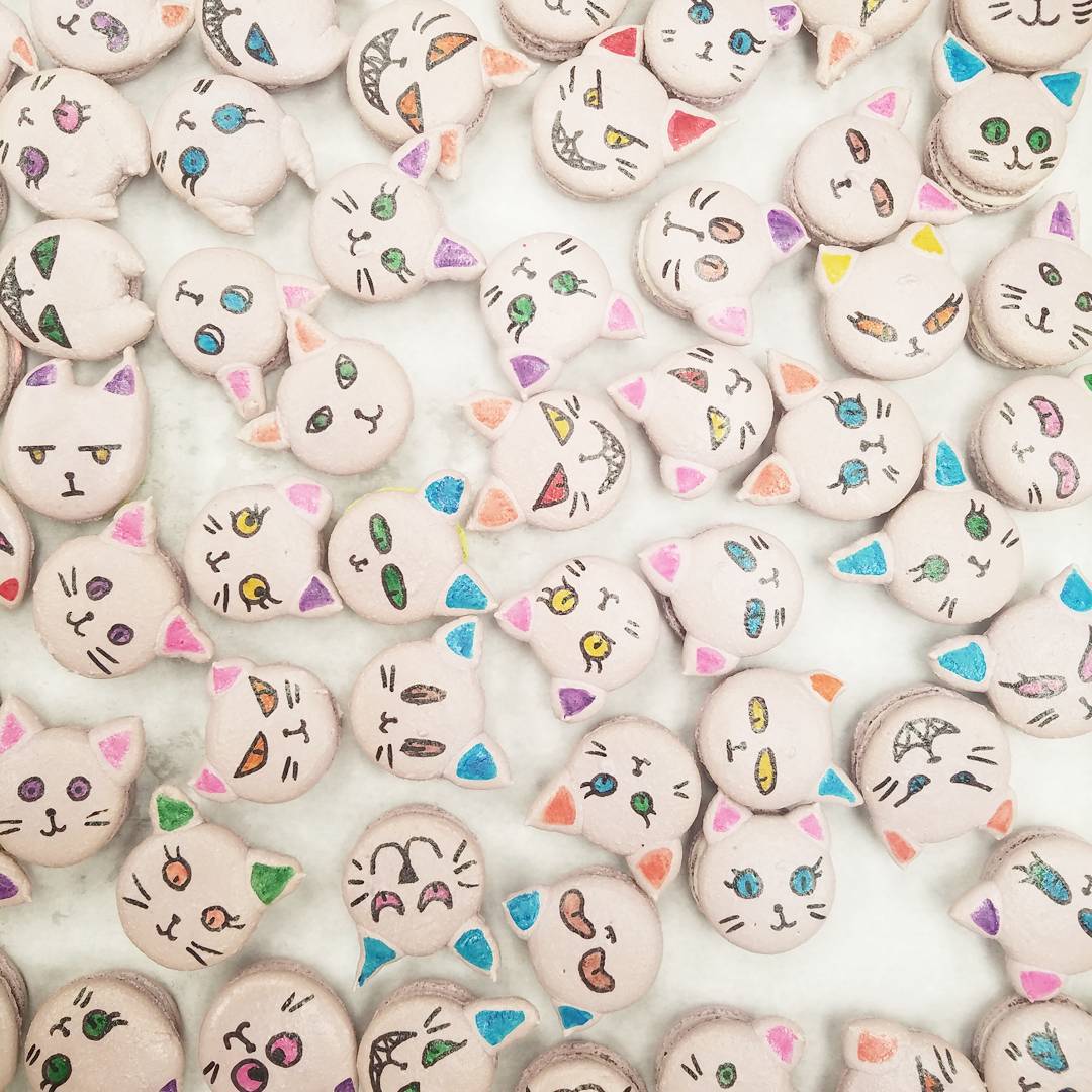 French Macarons – delightful, chewy cookies that pack intense flavor. Each macaron takes two days to produce. One day to create and fill and another day for them to rest and infuse with the filling. All of our fillings are handmade like intense lemon curd or deep and creamy chocolate ganache. We can make just about any color or flavor you can dream up as well as dusting and decorating the shells.